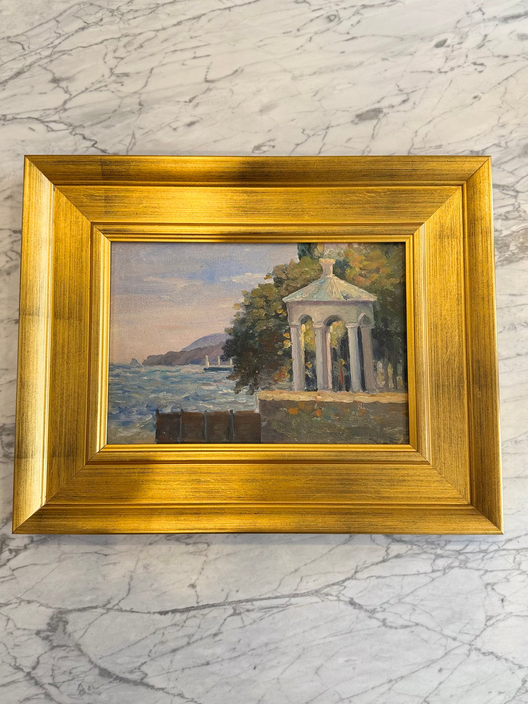 20th Century French Coastal Landscape with Neoclassical Pavilion