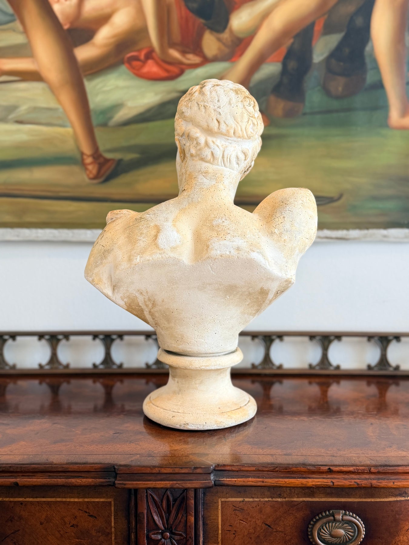 Works of this type were often produced for artists’ studios, schools, or as decorative objects for cultivated interiors, reflecting the enduring influence of classical sculpture in early-to-mid 20th-century England. The scale makes it particularly versatile—ideal for a bookshelf, mantel, console, or layered vignette—while still commanding presence as a sculptural object.