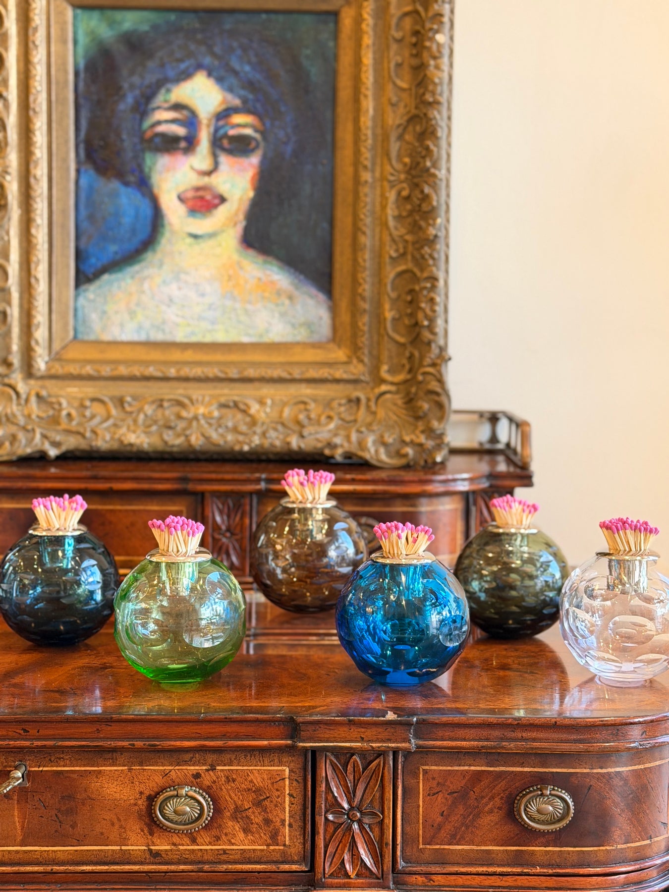 Offered in six richly saturated colours, these strikers bring a sense of charm, ritual, and practicality to any room — perfect on a bar cart, beside a favourite candle, or layered into a vignette on a coffee table.