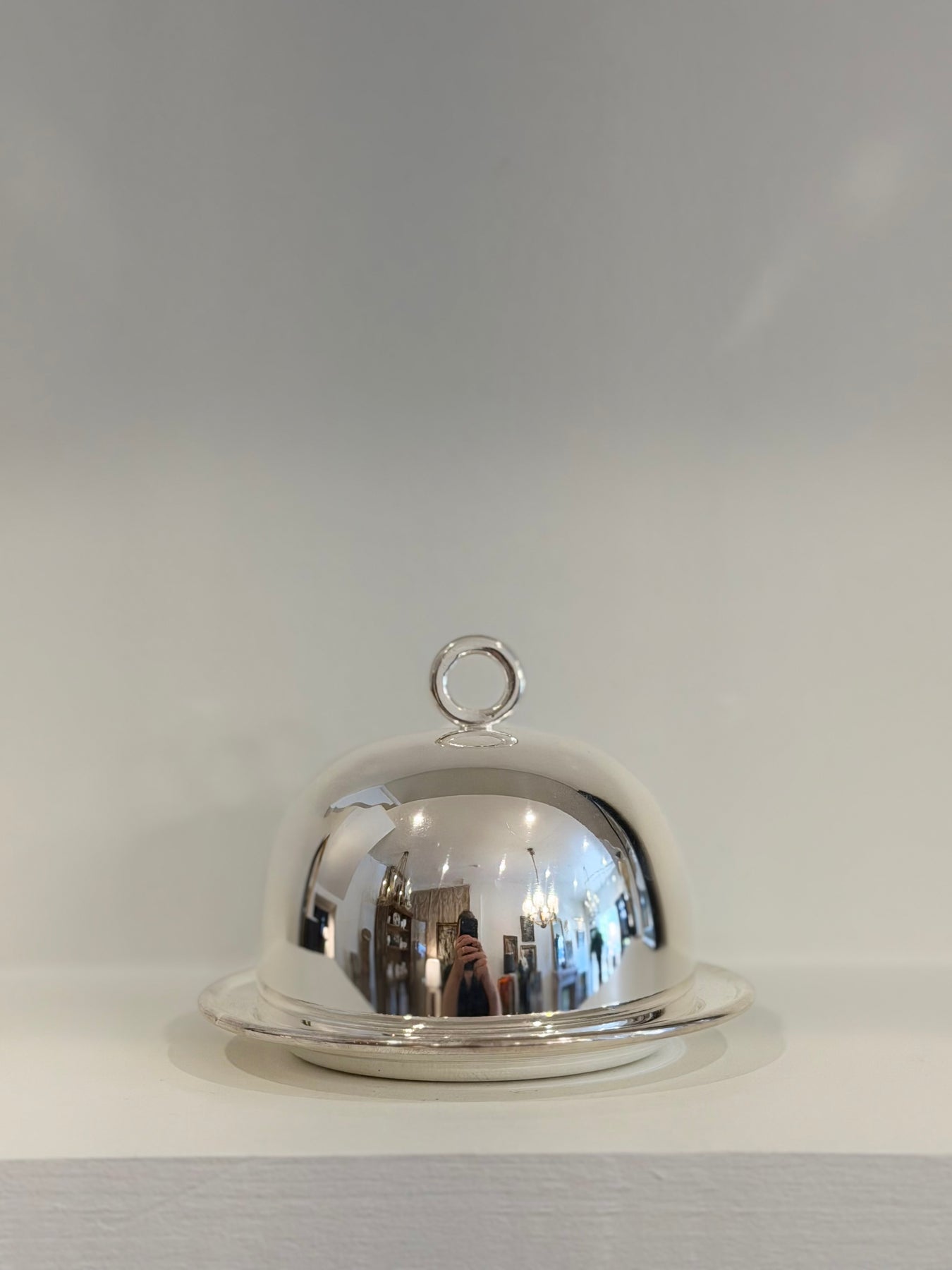 These compact domed dishes were traditionally used in grand hotels and private clubs to serve butter, caviar, or small accompaniments while keeping contents cool and covered. The removable glass insert provides both practicality and refinement, allowing for easy cleaning and modern-day versatility — ideal for serving hors d’oeuvres, condiments, or even as a decorative accent on a bar cart or vanity.