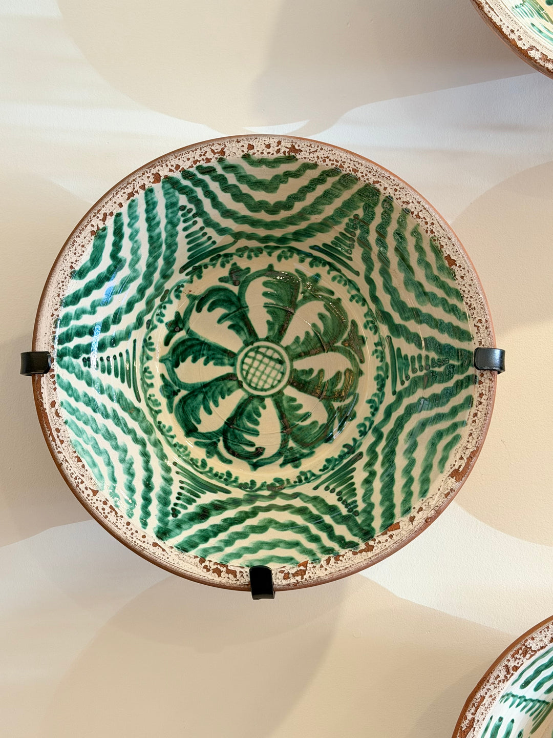 Large Granada Hand-Painted Andalusian Green Glazed Ceramic Basin - Floral