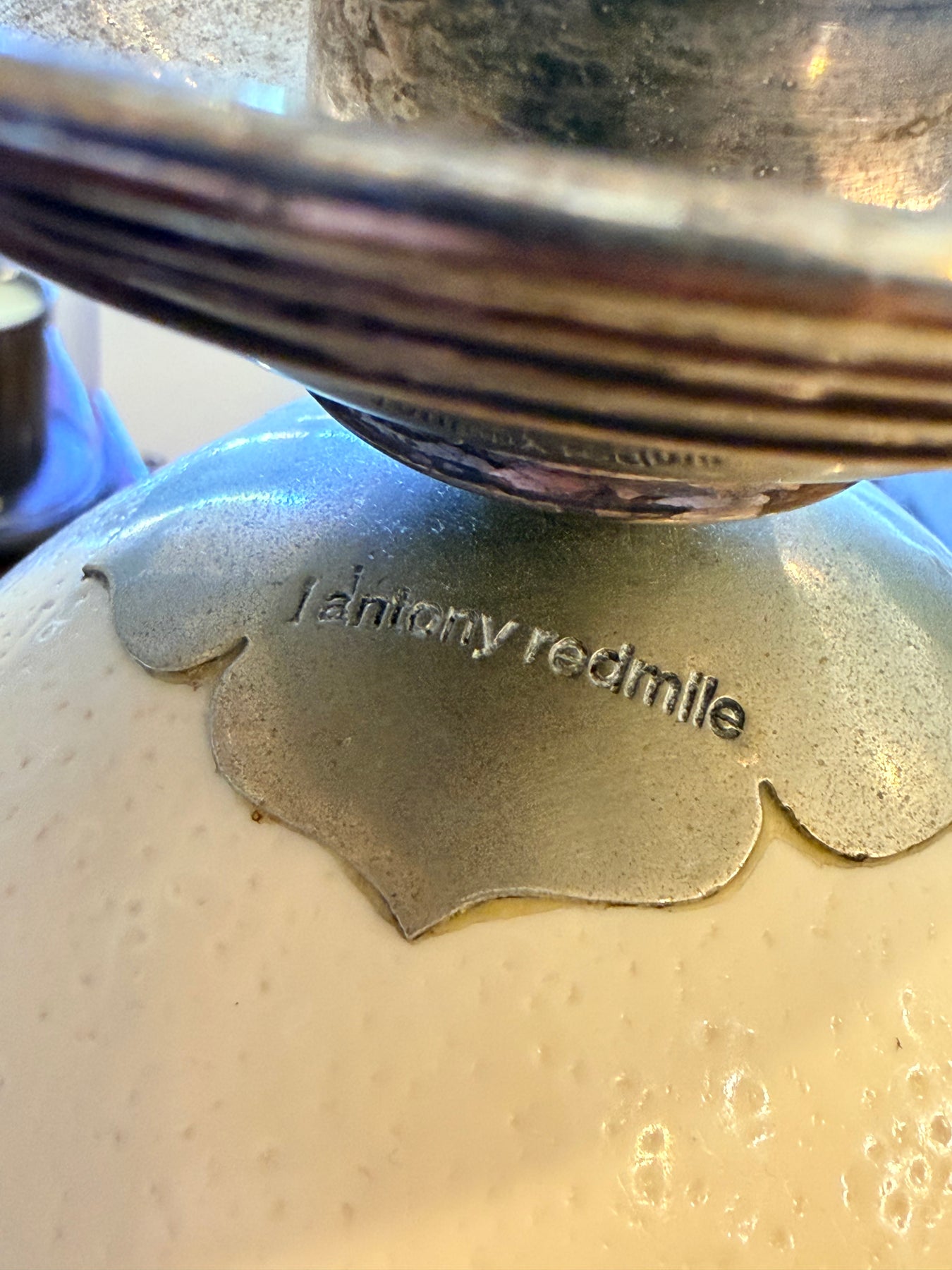 A rare and iconic pair of Redmile candlesticks—striking both as functional lighting and as sculptural objets d’art. Their scale and surreal charm make them a statement on any console, dining table, or mantle.