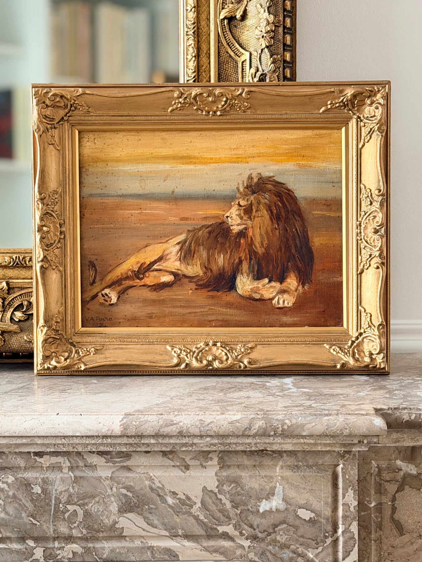 Signed and dated V. A. Peake, 1924 in the lower left, the work reflects the enduring English tradition of animal painting, bridging late Victorian naturalism and early modern painterly expression.
